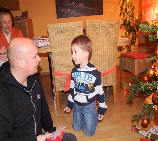 Am nächsten Tag kamen Sven-Leon, Carsten und Sonja zu uns. Mama hat lecker für uns gekocht und das Christkind hat sogar bei Carsten und Sonja auch noch etwas für mich da gelassen. Es war ein riesiger Feuerdrache für meine Ritterburg, klasse jetzt hatte ich schon viele Sachen dafür und Papa hat mir versprochen dass ich mir für das Geld was ich noch bekommen habe selber etwas aussuchen darf. Klasse mir gehts gut. Am Dienstag waren dei Feiertage vorbei und die Geschäfte wieder auf, und so haben Papa und ich uns auf den Weg gemacht um noch ein paar Sachen für mich auszusuchen. Ich hab mir genau überlegt was ich mir aussuche...ein paar Ritter passend zu meiner Burg, ein neues Stück für meine Hot Wheel Bahn und noch zwei kleine neue Autos....soviele neue Sachen..zuhause hab ich dann mit Mama einige meiner alten Spielsachen zusammen gesucht und die haben wir dann abgegeben. Denn das ist auch wichtig dass ich auch einmal wieder etwas abgebe denn es gibt viele Kinder denen es nicht so gut geht wie mir. Am Mittwoch nachmittag haben wir Lucia, Claudia und Herbert besucht. Wir hatten einen sehr schönen Nachmittag. Lucia und ich konnten toll spielen, Lucia hat mir ihre neuen Inliner gezeigt die sie bekommen hat, sie kann schon ein wenig fahren, super...