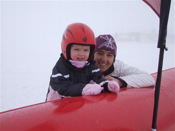 Endlich war es soweit, Finja, Karina und Dirk kamen in Schwaz an und ich hab Finja erst einmal alles gezeigt. Wir haben dann Schi, Helm und Schuhe für sie ausgeliehen, ich hatte ja schon Sachen und so konnte es am Sonntag losgehen. Leider spielte das Wetter überhaupt nicht mit, es war sehr nebelig und es schneite auch ein wenig, aber ich hatte großen Spaß. Ich kam in die Gruppe von Sigi, sie hatte schon ein paar größere Kinder dabei aber da ich schon etwas bremsen konnte und auch Bogen machte durfte ich mit zu den Großen. Nur mit dem Aufstehen klappte es noch nicht so gut. Nach einer Stunde ging es schon gleich zum Anfängerlift, ui, ui ich war ziemlich aufgeregt, aber es klappte alles ganz gut. Da ich ja erst vier war war ich in unserer Gruppe der Jüngste und auch der leichteste und so kam ich nicht immer so schnell hinterher wie ich es gerne wollte.aber es wurde von Tag zu Tag besser...Mama übte in der Zwischenzeit etwas mit Finja auch sie hatte Spaß, allerdings konnte sie noch nicht so lange fahren, dafür hatte sie noch nicht genug Kraft...bei mir war es schon besser....am nächsten Tag ging es zum großen Lift, ui Mama war nervöser als ich und ws soll ich euch sagen ich habs gemeistert. Ich bin bis oben gekommen ohne rauszufallen...allerdings mußten wir ja auch wieder runter,,,puh das war ganz schön schnell und steil...da ich und ein Mädchen noch nicht so schnell waren und so gut aufstehen konnten ist Mama dann immer hinter uns hergefahren und hat uns geholfen, so mußte Sigi nicht auf uns warten und wir konnten in der Gruppe bleiben, denn sonst hätten wir in die Babygruppe gemußt und das wollten wir nicht...und wie gesagt es klappte....
